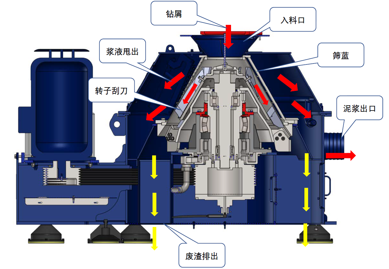1.轉(zhuǎn)速可達(dá)900RPM,能夠形成420G的分離因素,有效分離鉆屑中的液體;