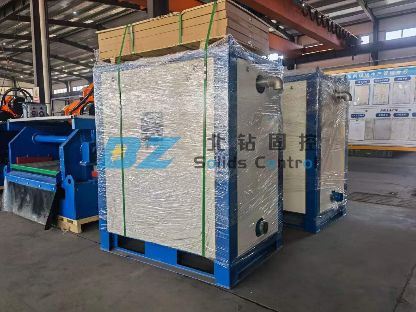 北鉆固控設(shè)備近期生產(chǎn)制造的兩套負(fù)壓振動篩,經(jīng)過嚴(yán)格的生產(chǎn)、組裝、測試等工序后準(zhǔn)備發(fā)往中石化鉆井現(xiàn)場。北鉆公司技術(shù)人員根據(jù)鉆井現(xiàn)場的實際工況和客戶需求,可將鉆井現(xiàn)場原有的普通振動篩替換成北鉆固控負(fù)壓振動篩,大大提高振動篩處理效率,回收更多的鉆井液。