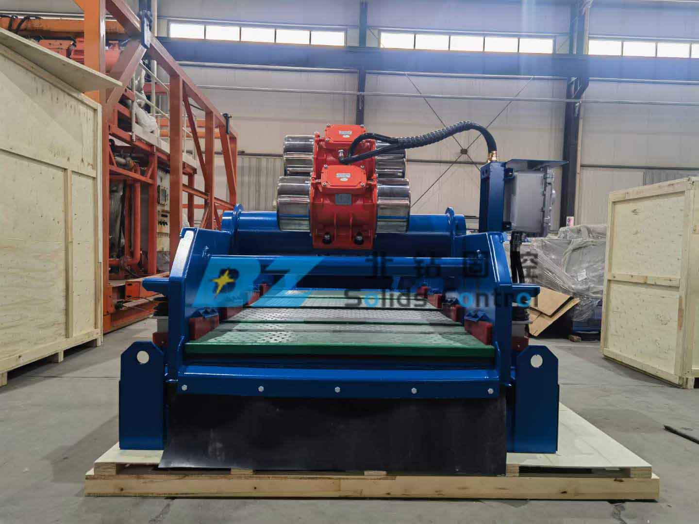 北鉆固控生產(chǎn)制造的鉆井液振動(dòng)篩在經(jīng)過生產(chǎn)裝配試機(jī)檢測(cè)等工序后即將發(fā)往日本地區(qū)項(xiàng)目現(xiàn)場(chǎng)。鉆井液振動(dòng)篩具有振動(dòng)強(qiáng)度高、篩分面積大、篩箱角度可調(diào)、結(jié)構(gòu)緊湊、性能卓越等特點(diǎn),廣泛應(yīng)用于各種泥漿凈化處理領(lǐng)域。